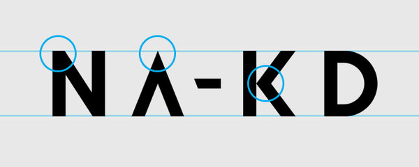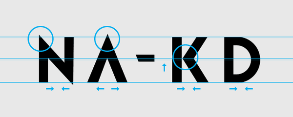 The logotype for fashion company NA-KD is one that’s been nagging me a bit too much. With a max of 30 minutes, I decided to improve on the things I consider the most obvious. Only focusing on the logotype.
